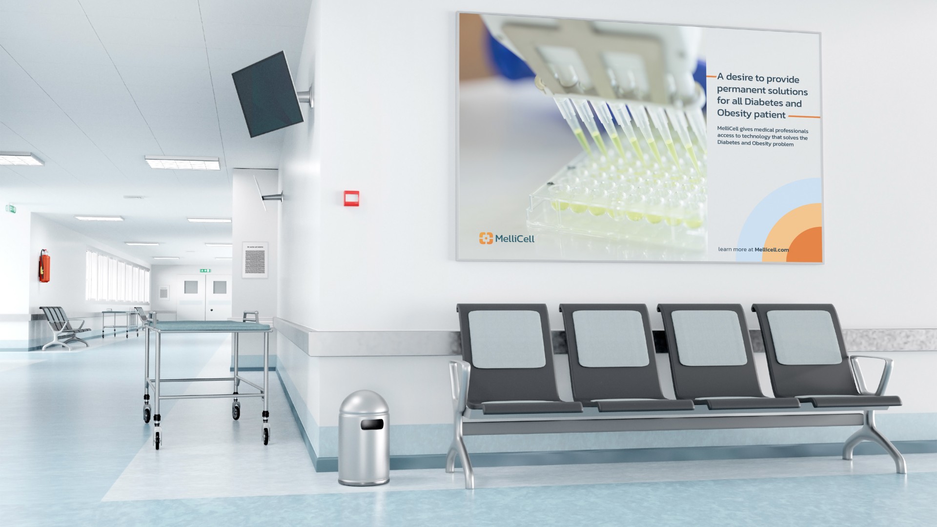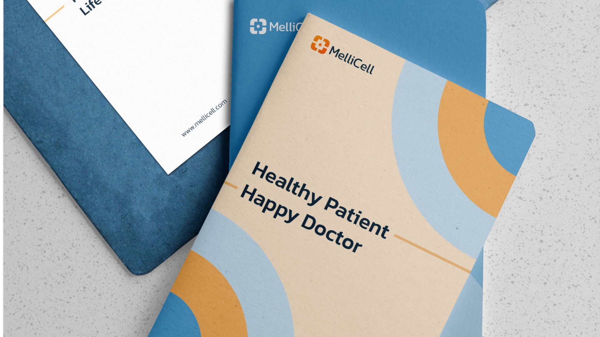 For the rebranding of Mellicell, we created a logomark that combines the Kanit typeface with a distinctive icon, representing the company's warm, friendly nature while staying professional and avoiding a playful "Joker" brand archetype. The brand pattern was inspired by adipocytes (fat cells) viewed under a microscope, incorporating varying colors that reflect the opacity changes in these cells, adding a scientific yet approachable touch. Directional icons were developed for environmental graphic design within the company’s buildings, ensuring a cohesive visual language. The stationery assets and design elements, including packaging concepts like the fictional Activa 2020 ampoule, were crafted to align with the overall brand strategy and positioning, maintaining consistency across all platforms and touchpoints.